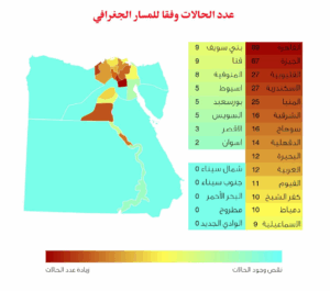 أما بالنسبة لعدد الوقائع وفق المسار الجغرافي (التوزيع الإقليمي) شهد إقليم القاهرة العدد الأكبر من الحالات بإجمالي 163 حالة يليه إقليم الدلتا بإجمالي 54 حالة ثم إقليم شمال الصعيد بإجمالي 45 حالة في حين شهد إقليم وسط الصعيد العدد الأقل من الحالات بإجمالي 5 حالات فقط.