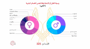 بينما بلغ إجمالي المصابين 46 مصابًا (ذكر واحد، 45 إناث) حيث حصد أيضا دافع “الشك في السلوك” العدد الأكبر منهم بإجمالي 38 مصابًا (1 ذكور، 37 إناث)، يليه دافعي الخيانة الزوجية بإجمالي 3 إصابات (كلهم من الإناث) ثم تَرْك المنزل بإجمالي حالتين إصابة من الإناث.