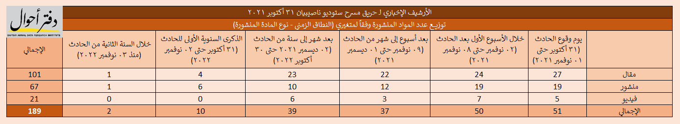 إصدار بيبلوغرافي خاص بأحداث فاجعة حريق مسرح ستوديو ناصيبيان 31 أكتوبر 2021 – وآثارها – ثم استعادة المسرح وإحياؤه مرة أخرى، وذلك من خلال توثيق كل ما نشرته المواقع الإلكترونية للصحف بالإضافة إلى مواقع التواصل الإجتماعي.